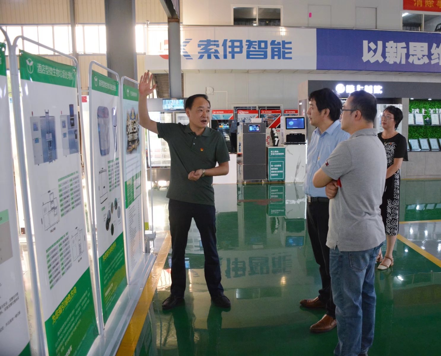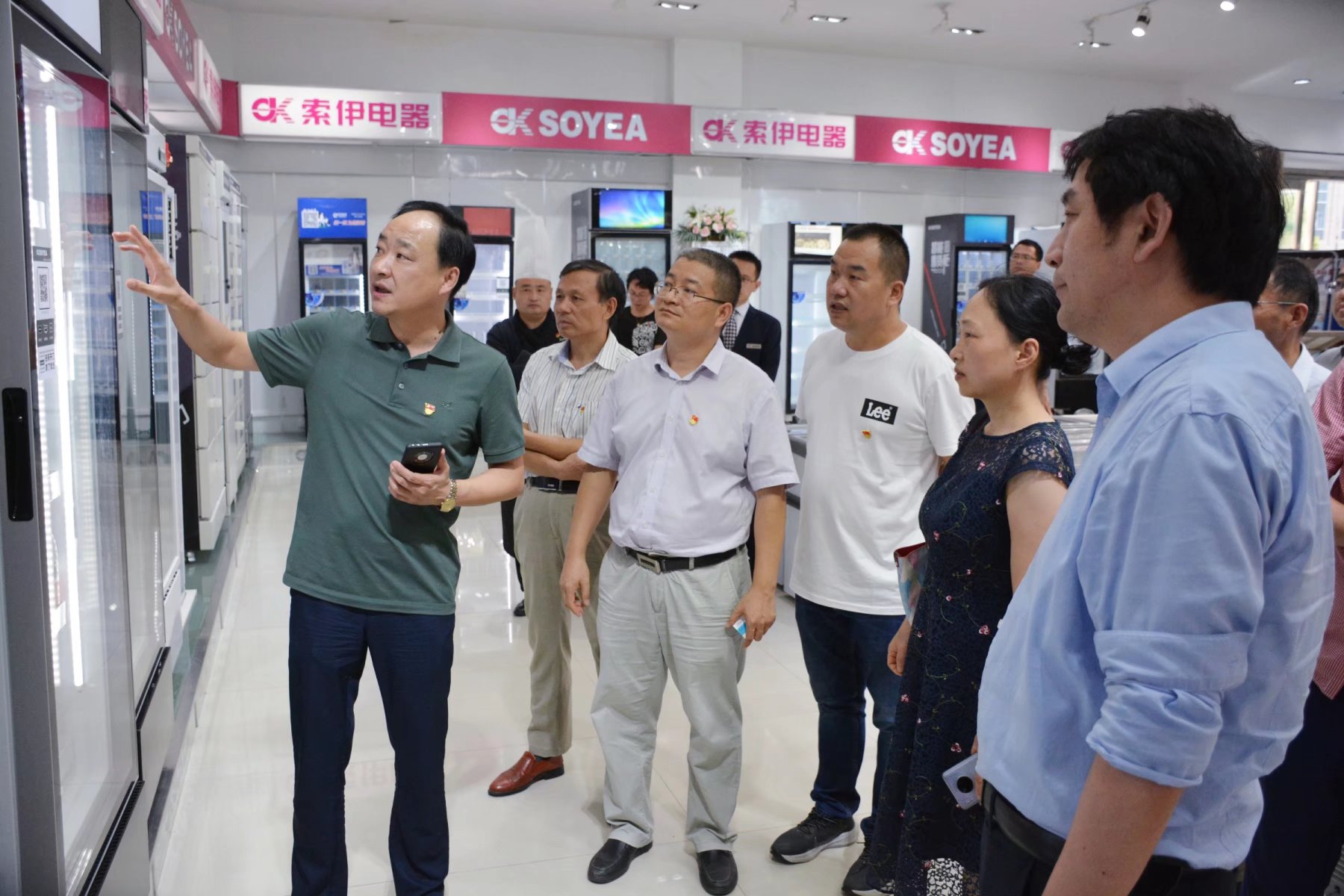 宣書記一行在王瓊峰董事長的陪同下參觀了集團(tuán)智能制造車間,董事長助理倪曙東對該車間做了介紹,重點介紹了世界首創(chuàng)、中國獨創(chuàng)的智能化數(shù)字烹飪機(jī)器人產(chǎn)品,以及全球領(lǐng)先、擁有100多項國家專利的智能化數(shù)字機(jī)器人飲料機(jī)產(chǎn)品,并現(xiàn)場解答了各位教授提出的問題。接著又來到索伊電器產(chǎn)品展示廳,參觀了無人售貨柜、牛奶格子柜、高端冷鏈、生鮮自提柜等系列智能產(chǎn)品。大家不停地稱贊,一致表示這些智能產(chǎn)品極大地提高了人們的生活品質(zhì),給生活帶來了更多的便利。最后又來到索伊集團(tuán)轉(zhuǎn)型展示廳,王瓊峰董事長介紹了企業(yè)探索升級、智能轉(zhuǎn)型、蛟龍得水、蓄勢騰飛的發(fā)展歷程,并強(qiáng)調(diào)企業(yè)只有不斷地通過積極探索、調(diào)研和論證,才能尋求適合自身發(fā)展的企業(yè)規(guī)劃、產(chǎn)業(yè)道路。企業(yè)通過幾年的探索,已經(jīng)形成以“智慧餐廚項目工程”為核心的發(fā)展方向,以“智能化數(shù)字廚電新產(chǎn)品”研發(fā)、制造和應(yīng)用為核心的智能化數(shù)字化產(chǎn)業(yè)集群。最終把錢學(xué)森在1994年提出的“烹飪工業(yè)化將出現(xiàn)在21世紀(jì)中國的第六次產(chǎn)業(yè)革命中”這一偉大構(gòu)想,通過索伊不斷的探索變成現(xiàn)實。
