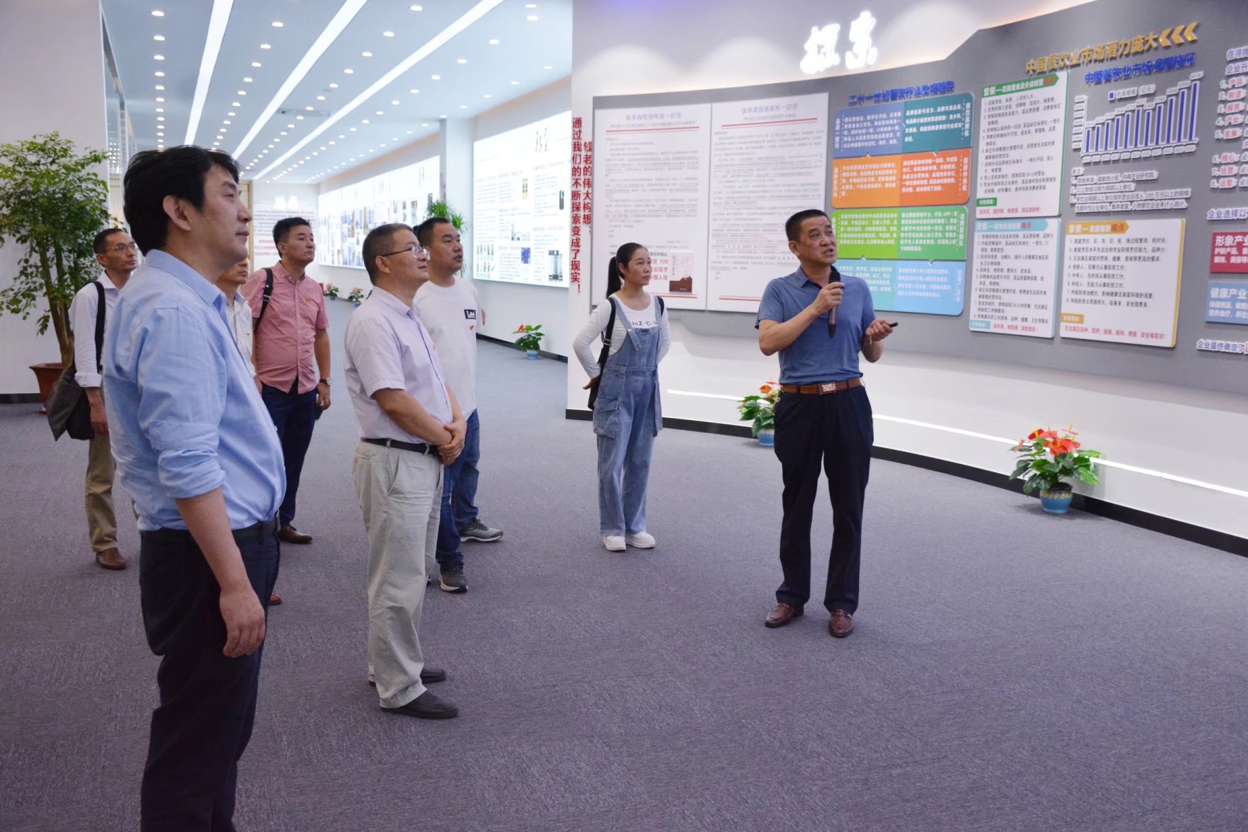 集團(tuán)董事長王瓊峰在轉(zhuǎn)型展示廳向大家介紹企業(yè)的發(fā)展歷程