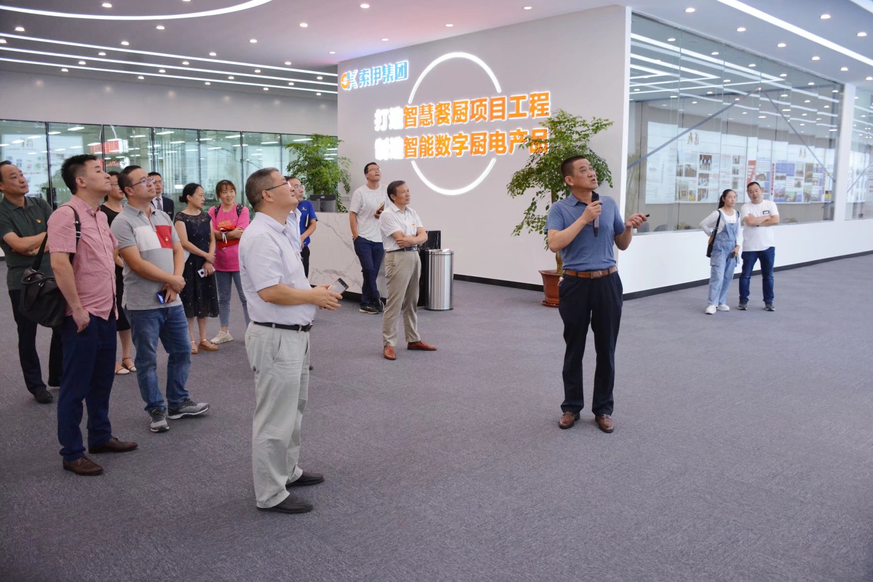 董事長助理倪曙東在智能車間展板前介紹公司系列智能產(chǎn)品