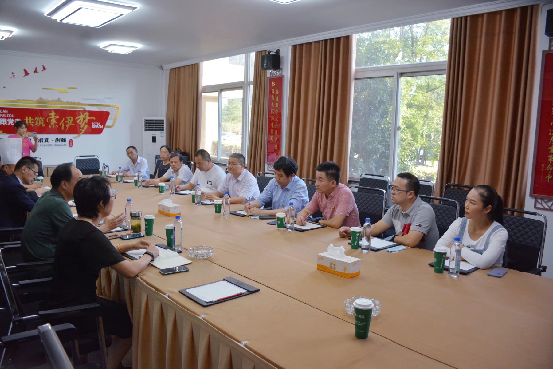 2021年9月24日下午皖西學(xué)院生物與制藥工程學(xué)院黨委書記宣平、副院長陳乃東帶領(lǐng)該院八位教授一行來到安徽索伊集團(tuán)開展校企互動交流活動。索伊集團(tuán)董事長王瓊峰、董事長助理倪曙東、黨委書記汪顯華等相關(guān)領(lǐng)導(dǎo)共同接待。