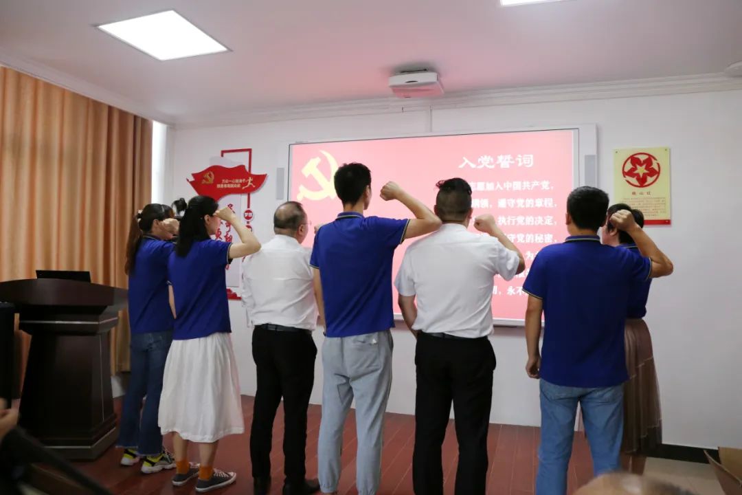 大會(huì)在高亢激揚(yáng)的《沒(méi)有共產(chǎn)黨就沒(méi)有新中國(guó)的》大合唱中開(kāi)始,全體黨員共同高歌,表達(dá)了對(duì)黨的無(wú)比忠誠(chéng)和熱愛(ài)。接著六名新黨員舉行了入黨宣誓,老黨員重溫入黨誓詞活動(dòng)。