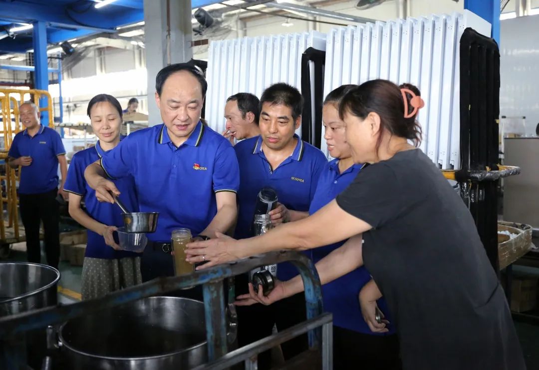 上午十點鐘,為體現(xiàn)公司領(lǐng)導(dǎo)對廣大員工的關(guān)懷,公司董事長助理倪曙東、黨委書記汪顯華來到車間,不僅是看望大家,還為大家送來了清涼可口的綠豆湯。員工們非常的開心,笑著說“真是又熱又渴,這時候給我們送綠豆湯真是及時雨”,一杯又一杯,真是清涼又可口。