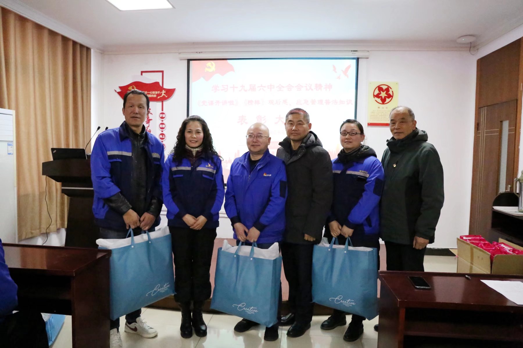 接著公司黨委委員施軍宣講了關(guān)于表彰《黨課開(kāi)講啦》、《榜樣6》觀后感及第三屆全國(guó)應(yīng)急管理普法知識(shí)競(jìng)賽獲獎(jiǎng)人員名單。