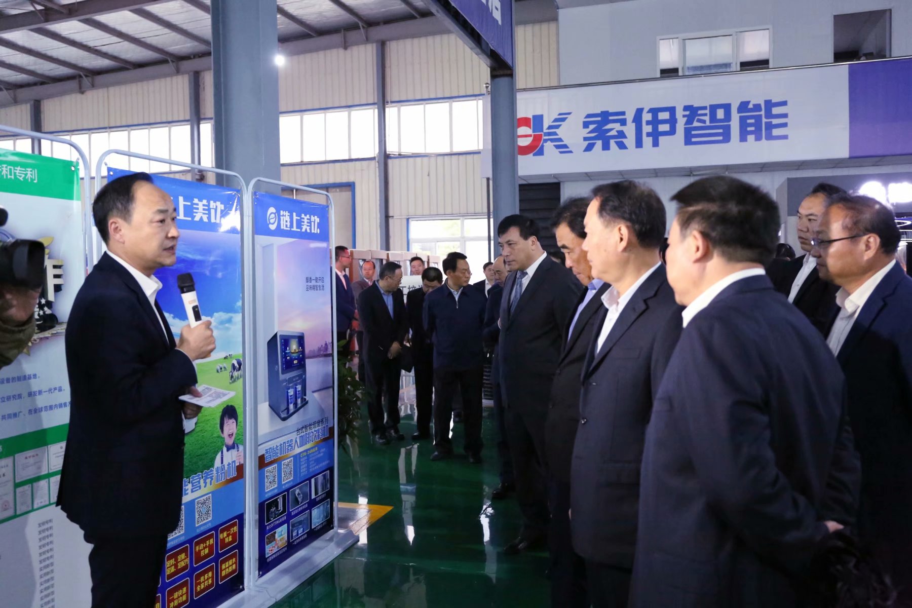 會前副市長束學(xué)龍與上海愛餐機(jī)器人有限公司創(chuàng)始人、董事長何青、安徽索伊集團(tuán)董事長王瓊峰交流。