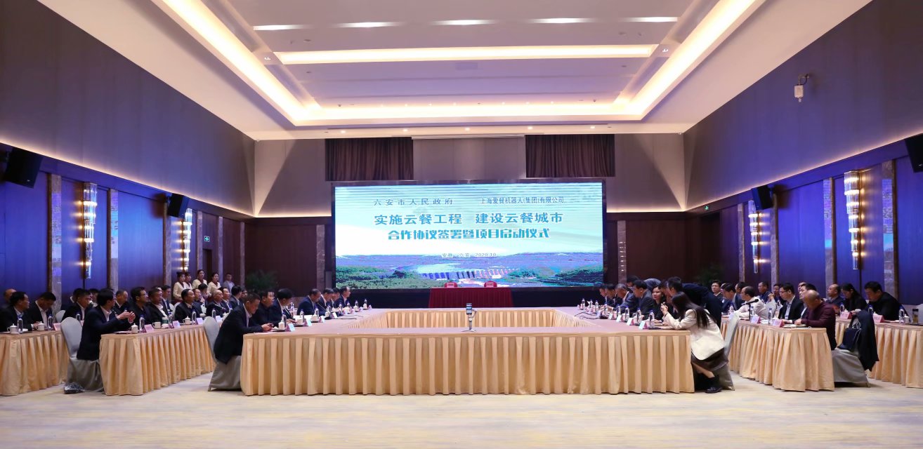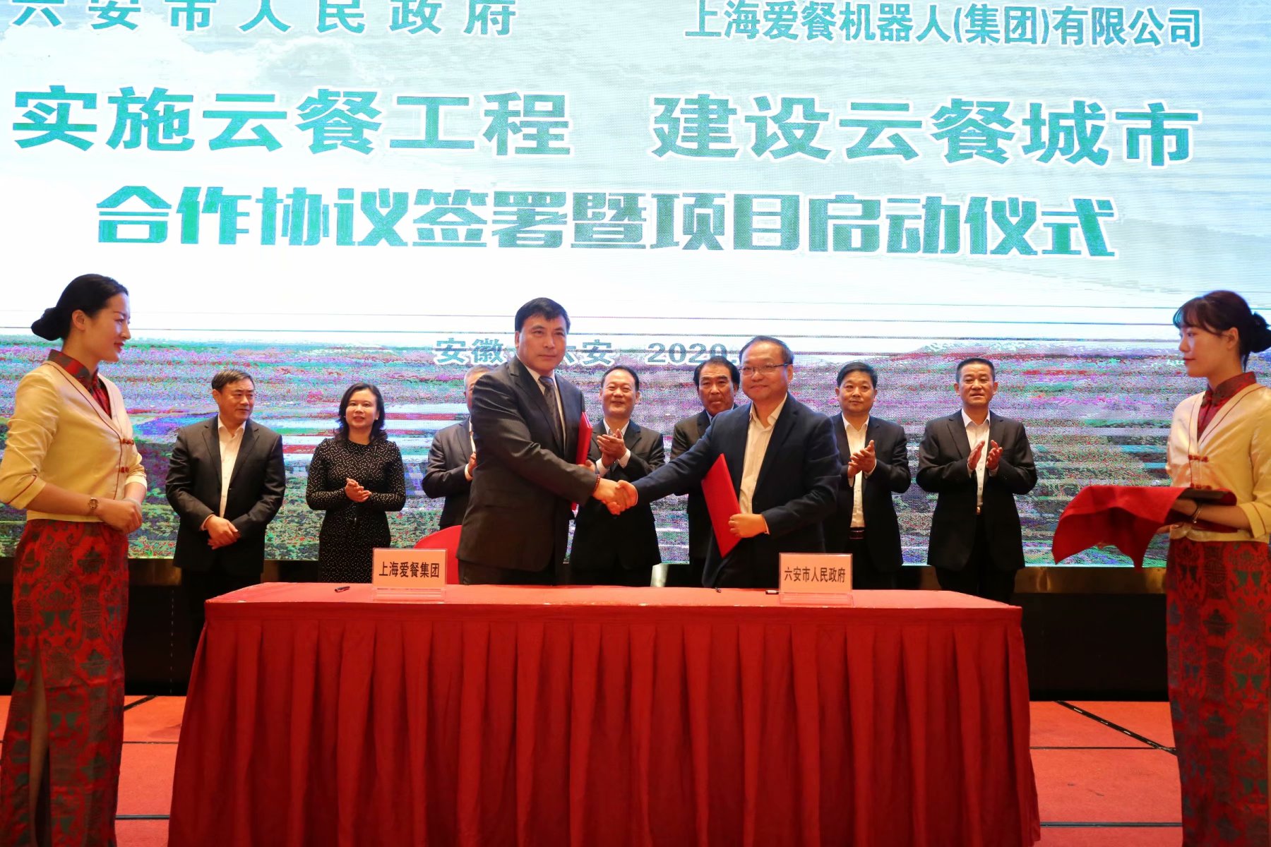 六安市人民政府副市長束學(xué)龍與上海愛餐機(jī)器人有限公司總裁何光共同簽署了合作協(xié)議,市委副書記、市長葉露中、愛餐機(jī)器人創(chuàng)始人、董事長何青、六安開發(fā)區(qū)管委會主任盧俊、上海愛餐機(jī)人公司董事何志光、總裁辦主任姚國冠、六安市人民政府秘書長陸純、安徽索伊集團(tuán)董事長王瓊峰見證簽約儀式。簽約儀式結(jié)束后,葉露中市長再次召集各縣區(qū)政府常務(wù)副縣(區(qū))長,要求他們進(jìn)一步推廣實(shí)施云餐工程,建設(shè)云餐城市項(xiàng)目,提建議,抓落實(shí),希望更好推動(dòng)此項(xiàng)工程的落地。