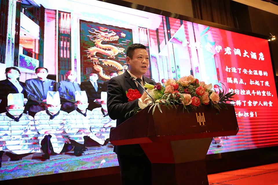 會上,全體參會人員共同觀看了索伊集團抗疫專題宣傳片《“疫”路風(fēng)雨 “伊”路有你》;董事長助理倪曙東宣讀了安徽索伊集團表彰文件;云餐智慧物聯(lián)科技有限公司總經(jīng)理孫玉勝、索伊君瀾大酒店總經(jīng)理張雷分別代表先進集體上臺發(fā)言,索伊電器制造有限公司安環(huán)處處長張嘯、索伊君瀾大酒店智廚主管戚玲代表先進個人上臺發(fā)言。集團領(lǐng)導(dǎo)和部門領(lǐng)導(dǎo)先后為3個先進集體和17位先進個人進行現(xiàn)場頒獎。